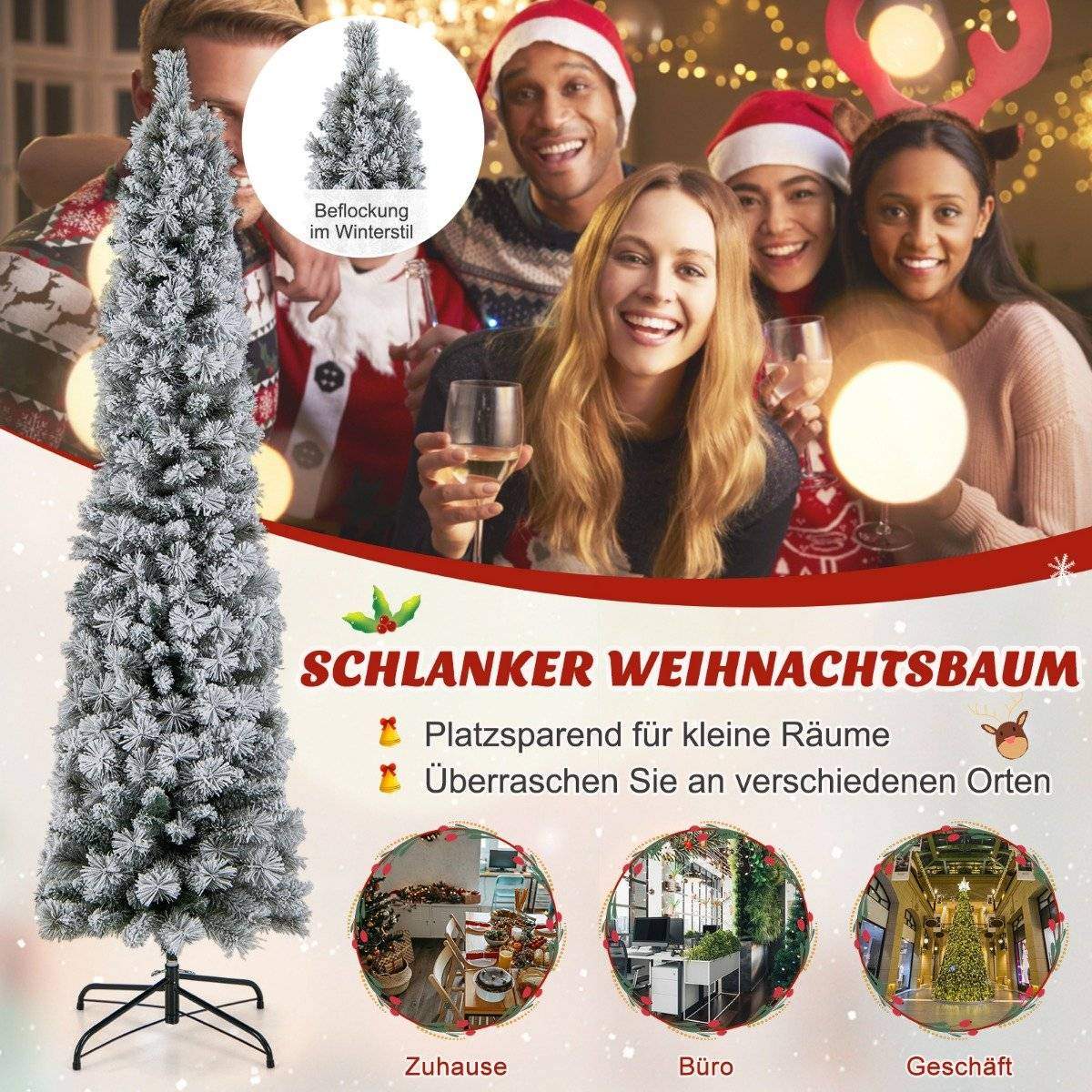 Kunstig juletre med LED-lys Slank juletre Opplyst Festtre 210cm