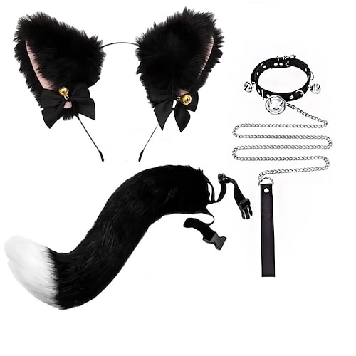 Cerchietto con orecchie di gatto fatte a mano e set di coda – graziosi accessori per cosplay da gatta, orecchie e coda di animali per Halloween, feste e travestimenti