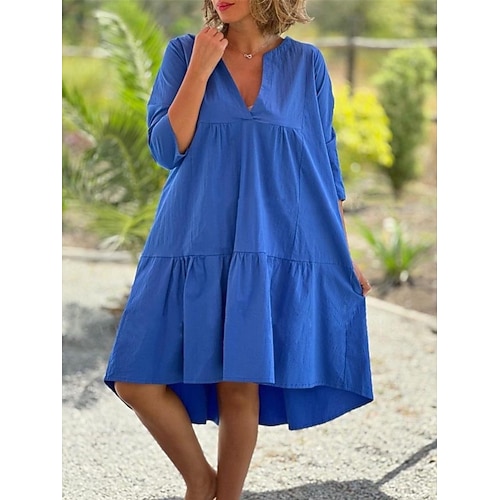 Per donna Abito Midi Vestito a caftano Abiti in cotone e lino Vestito Casual Essenziale Moderno Quotidiano Weekend Vestibilità comoda Semplice Mezza Manica Scollo a V Blu Rosa Blu marino Kaki Estate