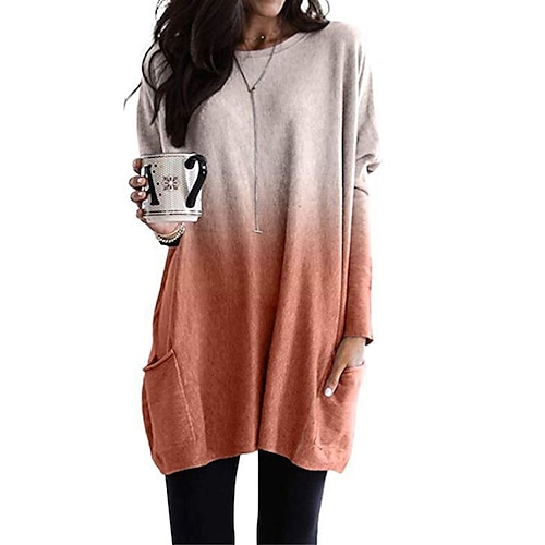 top da casa da donna, semplice, casual, comodo, da casa, quotidiano, traspirante, girocollo, manica lunga, tasca, autunno, inverno, abiti da casa