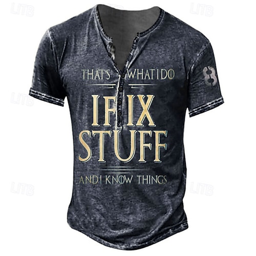 Maglietta grafica divertente 'Riparo cose e so cose' maglietta a maniche corte Henley tee vintage da manutentore
