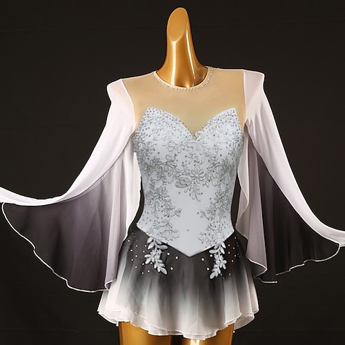 Vestito da pattinaggio artistico Per donna Da ragazza Pattinaggio sul ghiaccio Vestiti Bianco Collage Scollatura posteriore Retato Elevata elasticità Addestramento Competizione Vestiti da pattinaggio