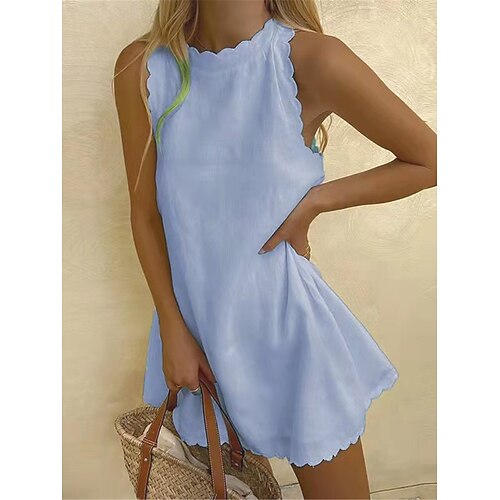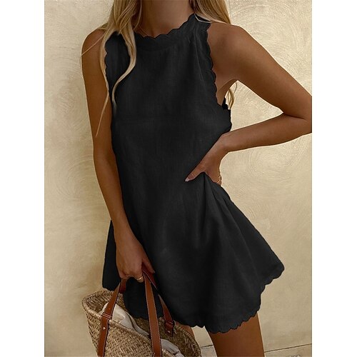 Per donna Mini Abito Abito Bianco Abito da laurea Abito in cotone e lino Vestito Estivo Essenziale Casual Quotidiano Vacanza Data Vestibilità regolare Semplice Senza Maniche Girocollo Blu Nero Bianco