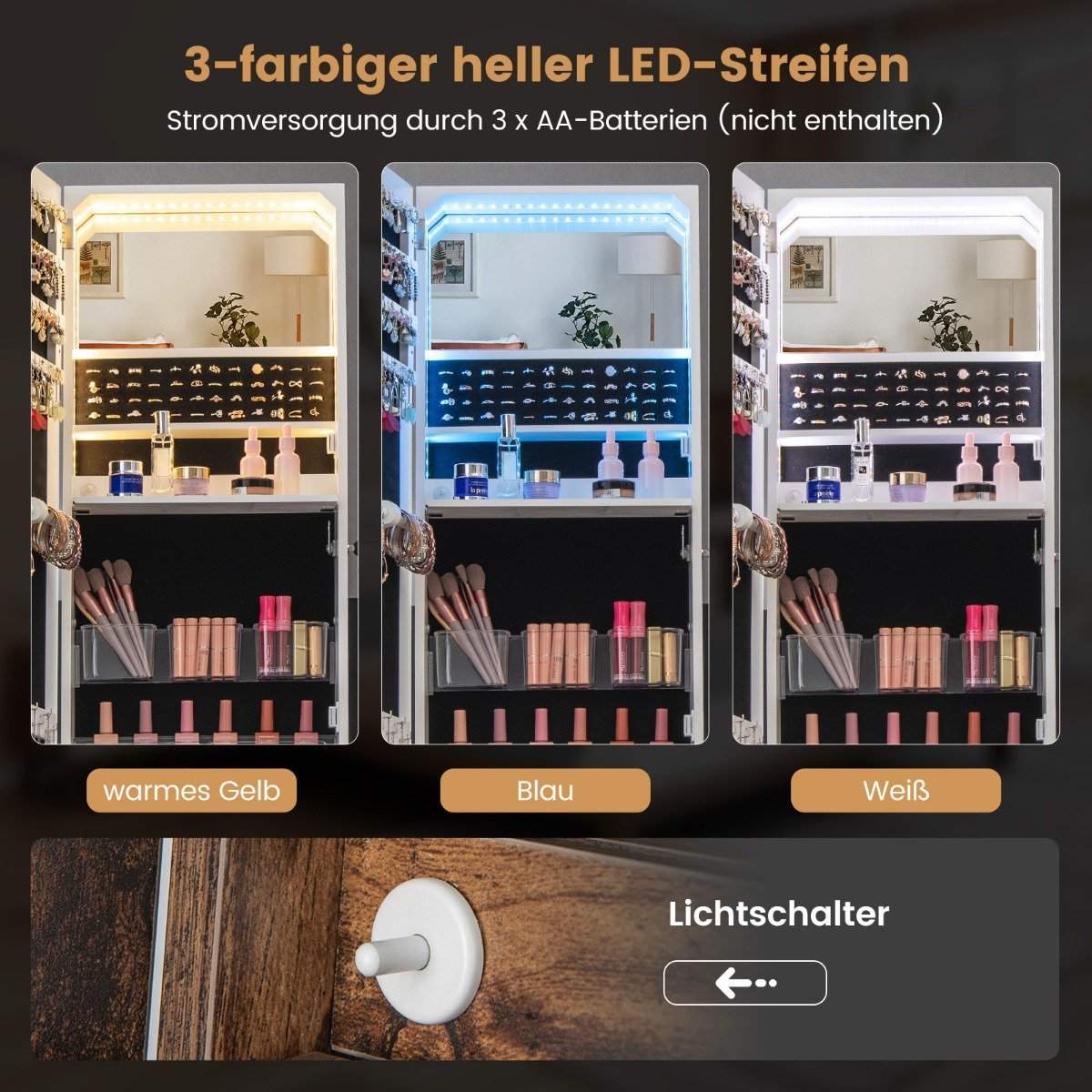 Smykkeskap med speil Speilskap låsbart med 3 fargede LED-lys 41 x 35 x 166 cm brun