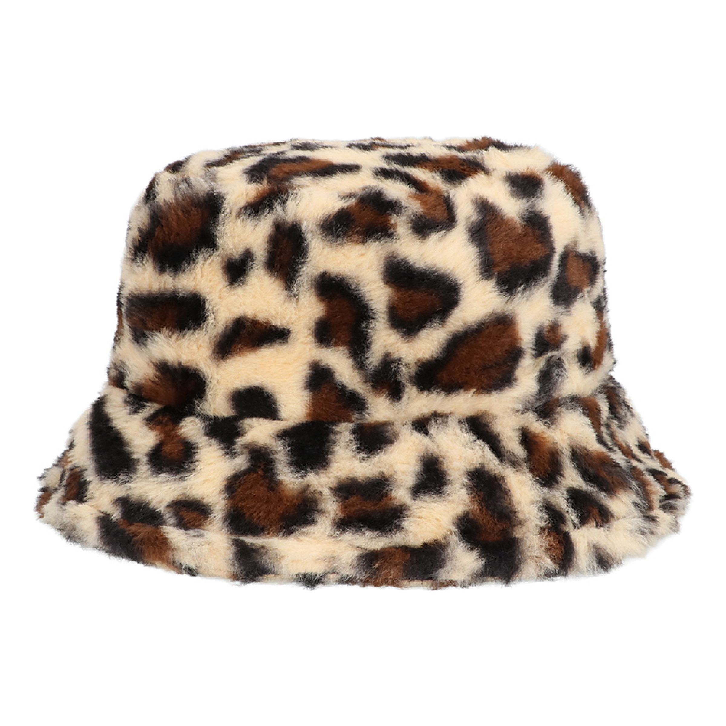 Bucket Hat i kunstpels Leopard - One size