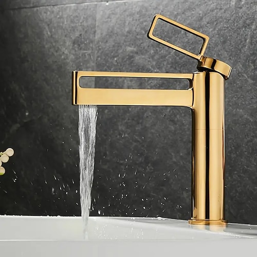Lavandino rubinetto del bagno - Cascata Galvanizzato Installazione centrale Una manopola Un foroBath Taps