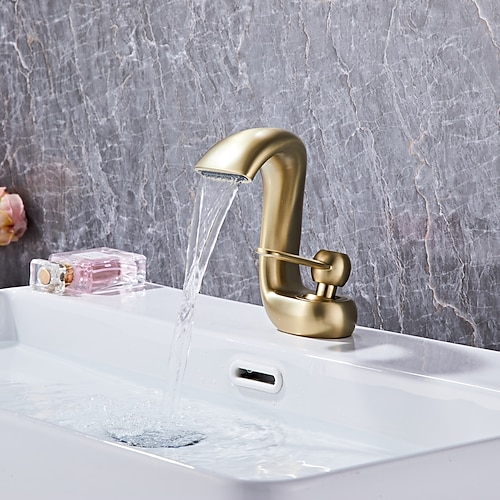 Lavandino rubinetto del bagno - Cascata Ottone antico Installazione centrale Una manopola Un foroBath Taps