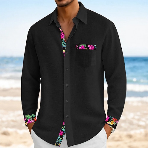 Herren Hemd Leinenhemd Sommerhemd Strandhemd Einfarbig Urlaub Lässig Schwarz Weiß Rosa Blau Langarm Revers Sommer Frühling Bekleidung