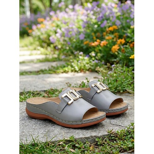 sandali da donna in similpelle bianca con fibbia dorata, stile casual per passeggiate in giardino, vacanze e commissioni quotidiane