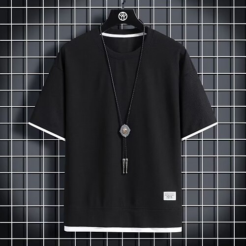 Per uomo Maglietta Waffle Maglietta Manica Corta Maniche Corte Girocollo Estate Semplice Moda Designer Essenziale Finto due pezzi Vacanza Streetwear Casuale Nero Bianco Grigio Maglietta Top per Uomo