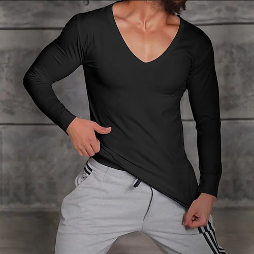 Per uomo Maglietta Manica Lunga Scollo a V Inverno Primavera Autunno Tutte le stagioni Tinta unica Maglieria Quotidiano Abbigliamento Sportivo Puro All'aperto Casual Casuale Nero Bianco Blu