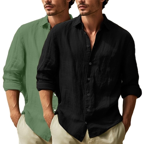 Per uomo Camicia Camicia di lino Camicia Estiva Abbigliamento da spiaggia Camicia con Bottoni Semplice Vacanza Crociera Bianco rosa Bianco kaki Nero verde scuro Grigiocachi Manica Lunga Bavero