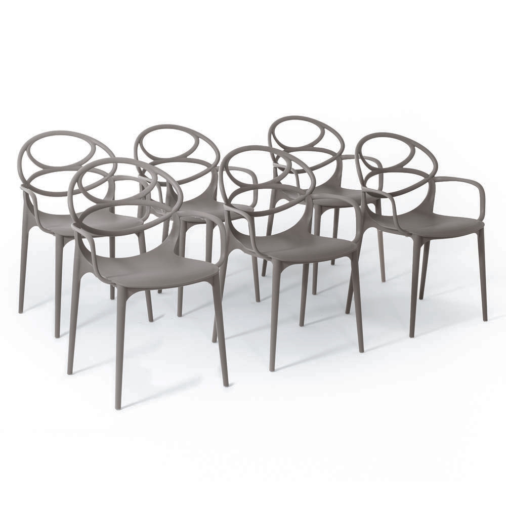RATTATAN Set aus 6 stapelbaren Stühlen aus Polypropylen mit Glasfaser für Außen- und Gartenbereich,Bar,Restaurant oder Küche,modernes Design–Ambra–Taupe