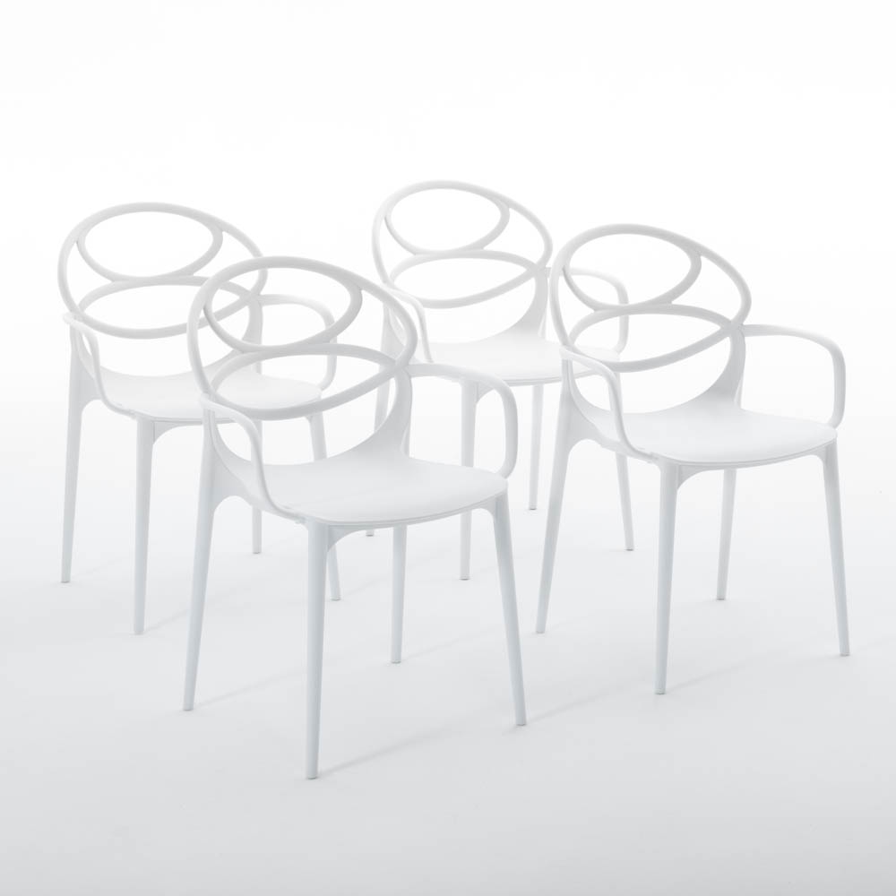 RATTATAN Set aus 4 stapelbaren Stühlen aus Polypropylen mit Glasfaser für Außen- und Gartenbereich, Bar, Restaurant oder Küche, modernes Design –Charlotte–Weiß