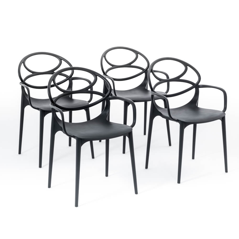 RATTATAN Set aus 6 stapelbaren Stühlen aus Polypropylen mit Glasfaser für Außen- und Gartenbereich, Bar, Restaurant oder Küche – Charlotte – Schwarz