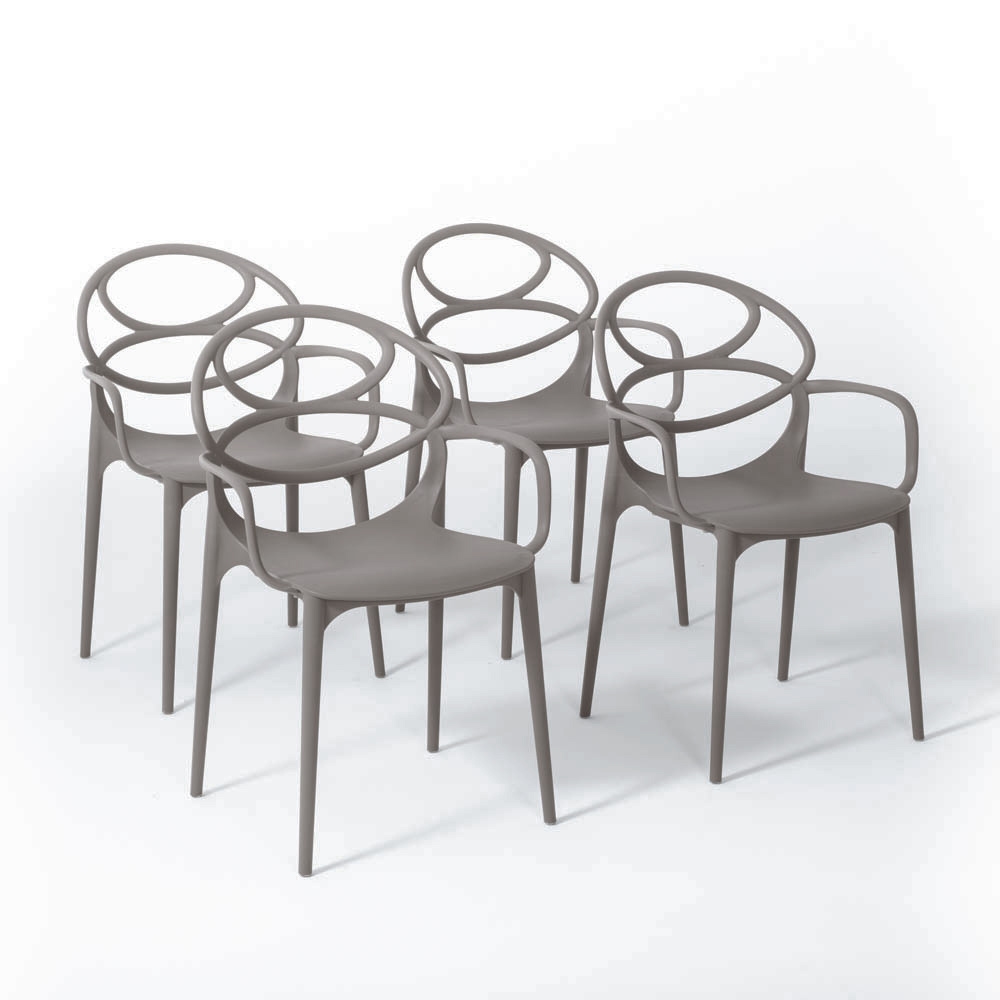 RATTATAN Set aus 4 stapelbaren Stühlen aus Polypropylen mit Glasfaser für Garten oder Innenbereich,wasserabweisend und widerstandsfähig–BARBARA–Taupe