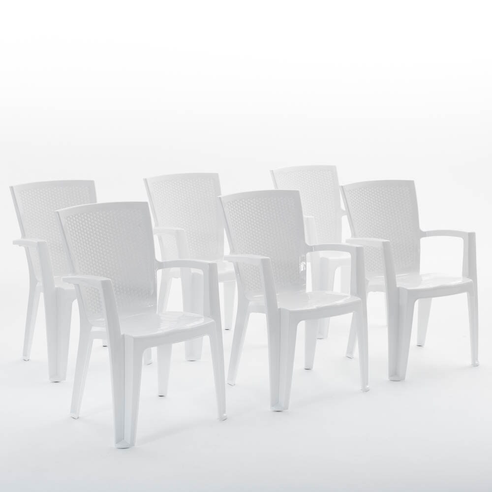 RATTATAN Set aus 6 einteiligen Stühlen aus Polypropylen mit Glasfaser, Rattanoptik, stapelbar für Außen- und Gartenbereich, Bar und Restaurant – Diana – Weiß