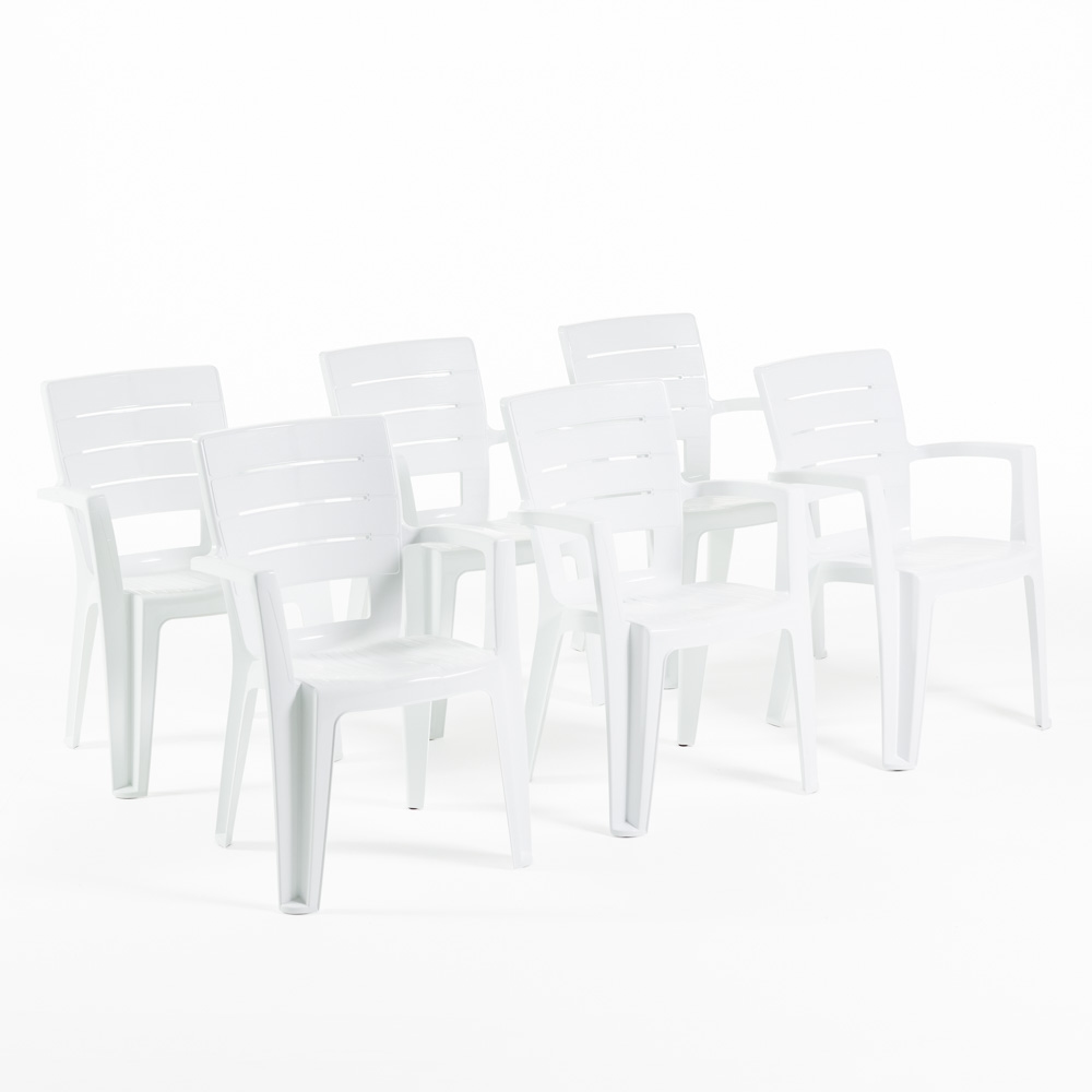RATTATAN Set aus 6 einteiligen Stühlen aus Polypropylen mit Glasfaser, Holzoptik, stapelbar für Außen- und Gartenbereich, Bar und Restaurant – Anita – Weiß