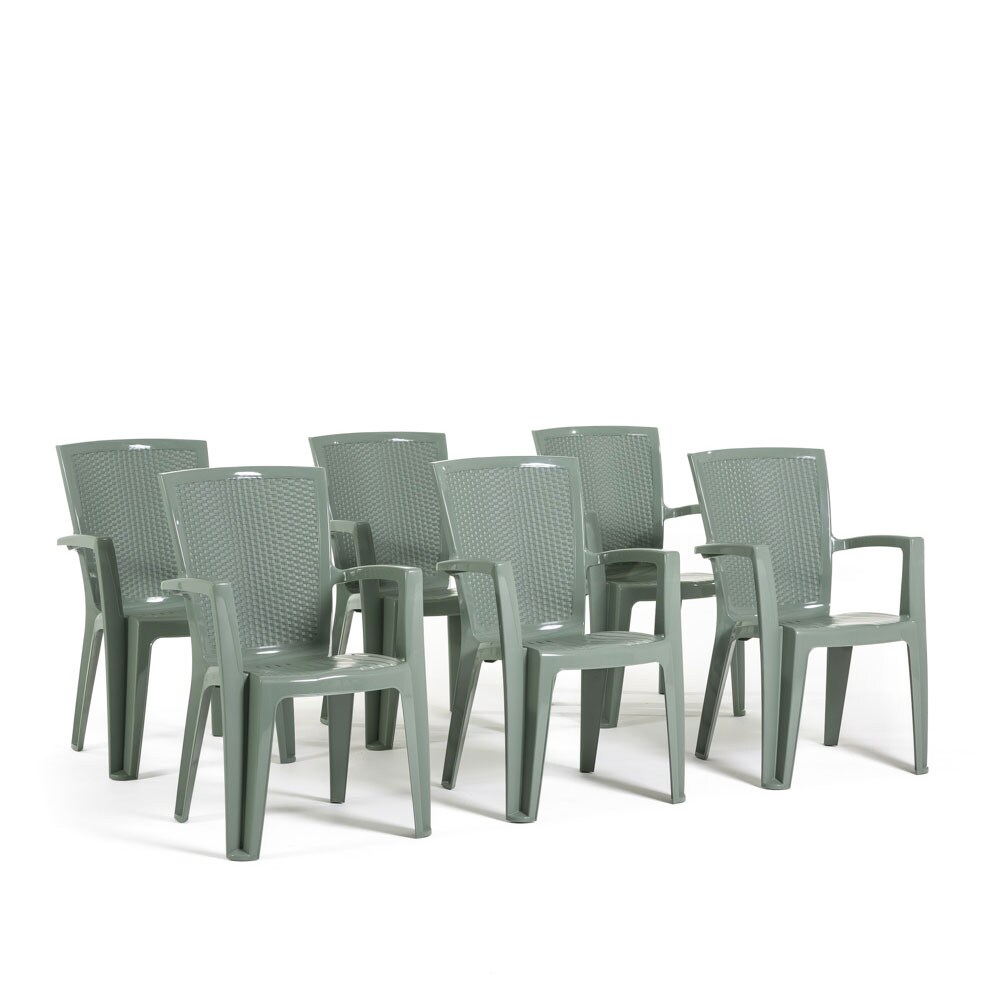 RATTATAN Set aus 6 einteiligen Stühlen aus Polypropylen mit Glasfaser, Rattanoptik, stapelbar für Außen- und Gartenbereich, Bar und Restaurant–Diana–Salbeigrün