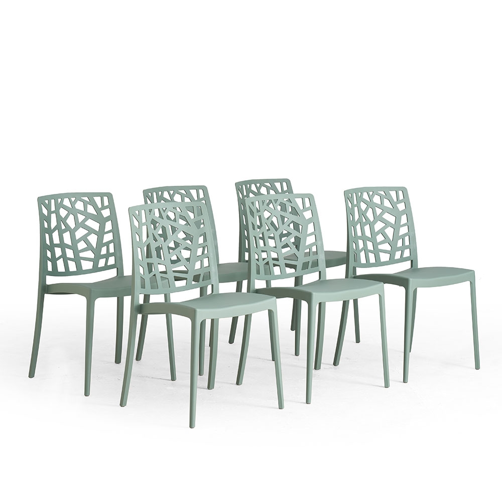 RATTATAN Set aus 6 stapelbaren Stühlen aus Polypropylen mit Glasfaser für Garten oder Innenbereich, wasserabweisend und robust, modernes Design-TRIXY-Salbei