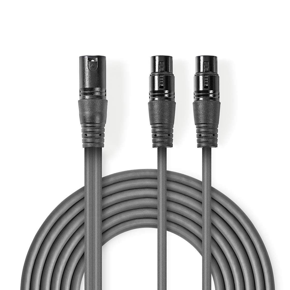 Balanceret Audio kabel | XLR 3-Pin Han | 2x XLR 3-Pin Hunstik | Nikkelplateret | 1.50 m | Runde | PVC | Mørkegrå | Kartonhylster