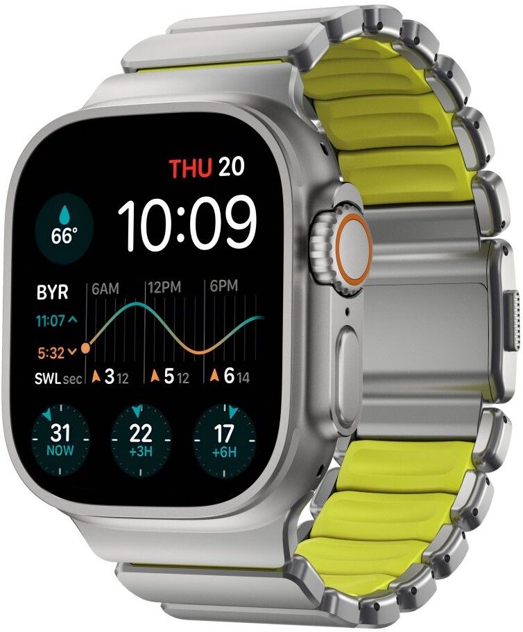 Nomad Stratos-rem (klokke 49/46/45/44/42 mm) - Grå /gul - Titanarmband FKM-gummi vattentåligt DLC-beläggning magnetlås passar Apple Watch Ultra/Series 13-20 cm
