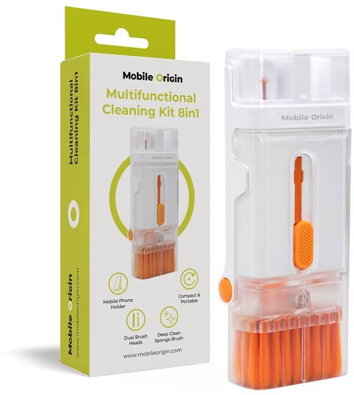 Mobile Origin multifunksjonelt rengjøringssett 8-i-1 - rengöringskit 8-i-1 för smartphones, surfplattor och laptops; skärm- och tangentbord, spray