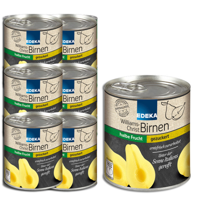 EDEKA Williams Christ Birnen gezuckert halbe Frucht 6x820 g