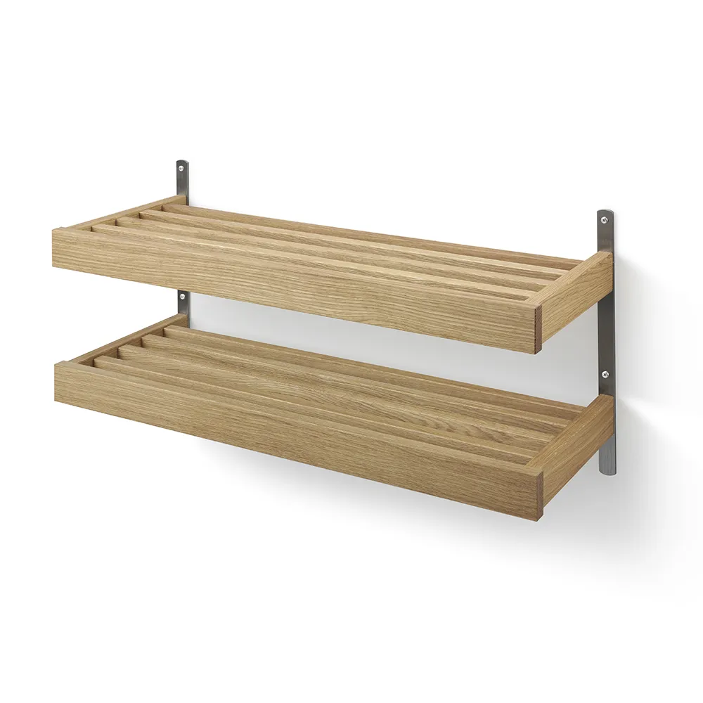 Oscarssons Möbel, Nadja Schuhregal 80 cm 2-stöckig an der Wand montiert Eiche lackiert/geschliffener Stahl