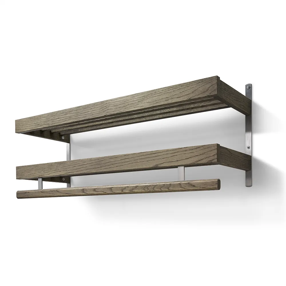 Oscarssons Möbel, Nadja Hutablage 100 cm 2 Etagen Eiche geräuchert/Stahl geschliffen