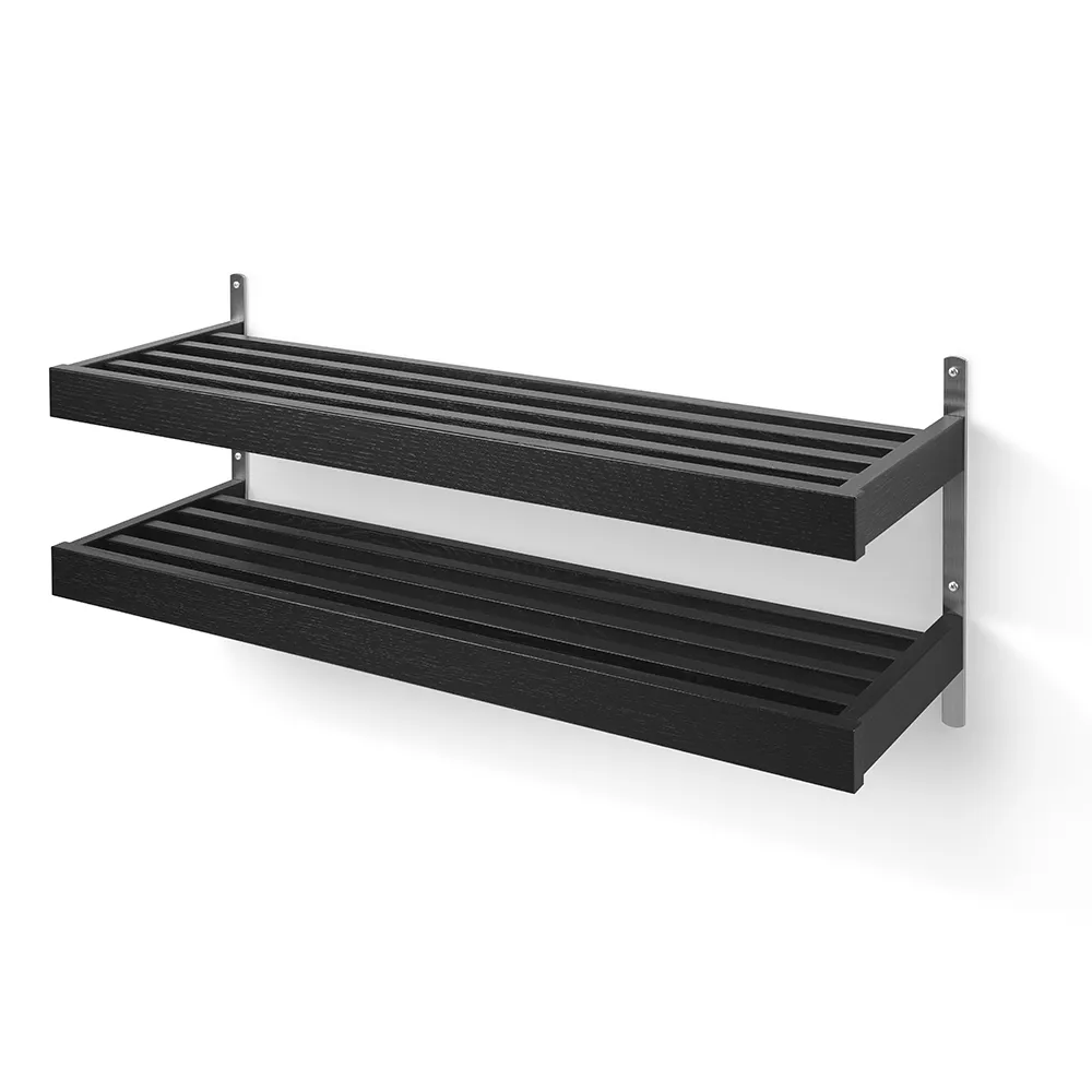 Oscarssons Möbel, Nadja Schuhregal 100 cm 2 Ebenen an der Wand montiert Eiche schwarz gebeizt/Stahl geschliffen
