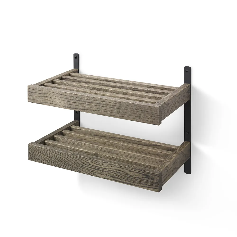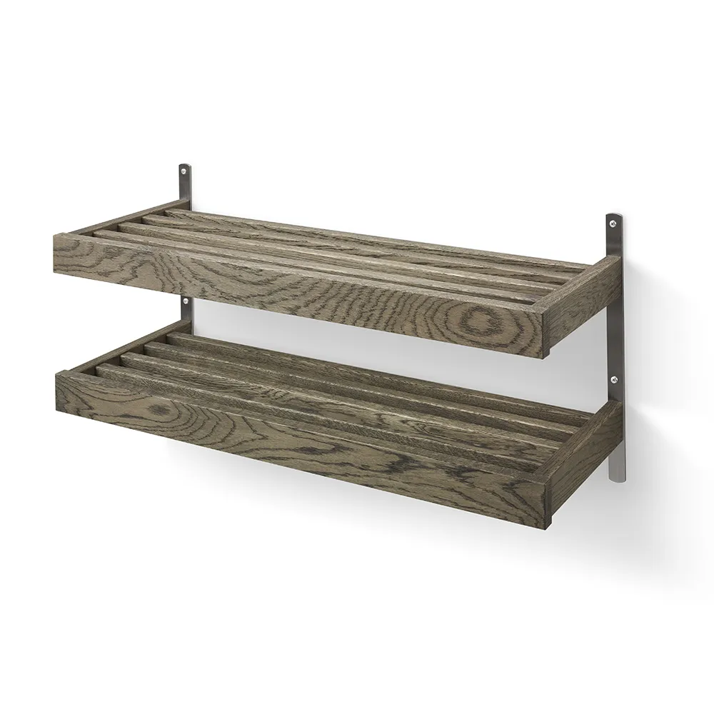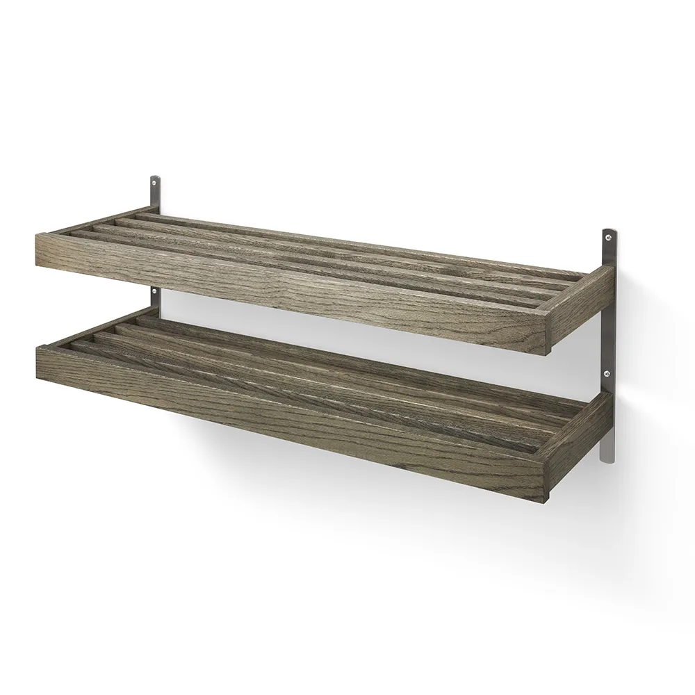 Oscarssons Möbel, Nadja Schuhregal 80 cm 2-stöckig an der Wand montiert Eiche geräuchert/Stahl geschliffen