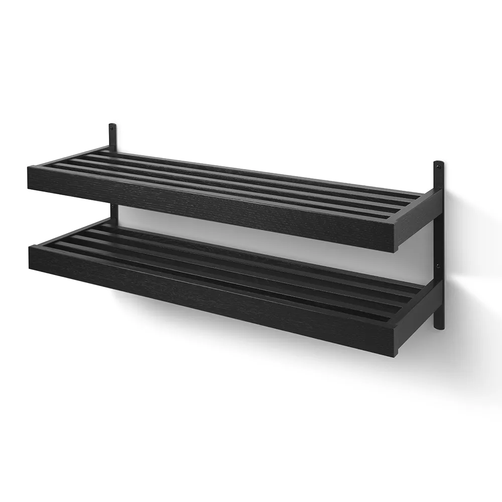 Oscarssons Möbel, Nadja Schuhregal 100 cm 2-stöckig an der Wand montiert Schwarz gebeizte Eiche/Mattschwarzer Stahl