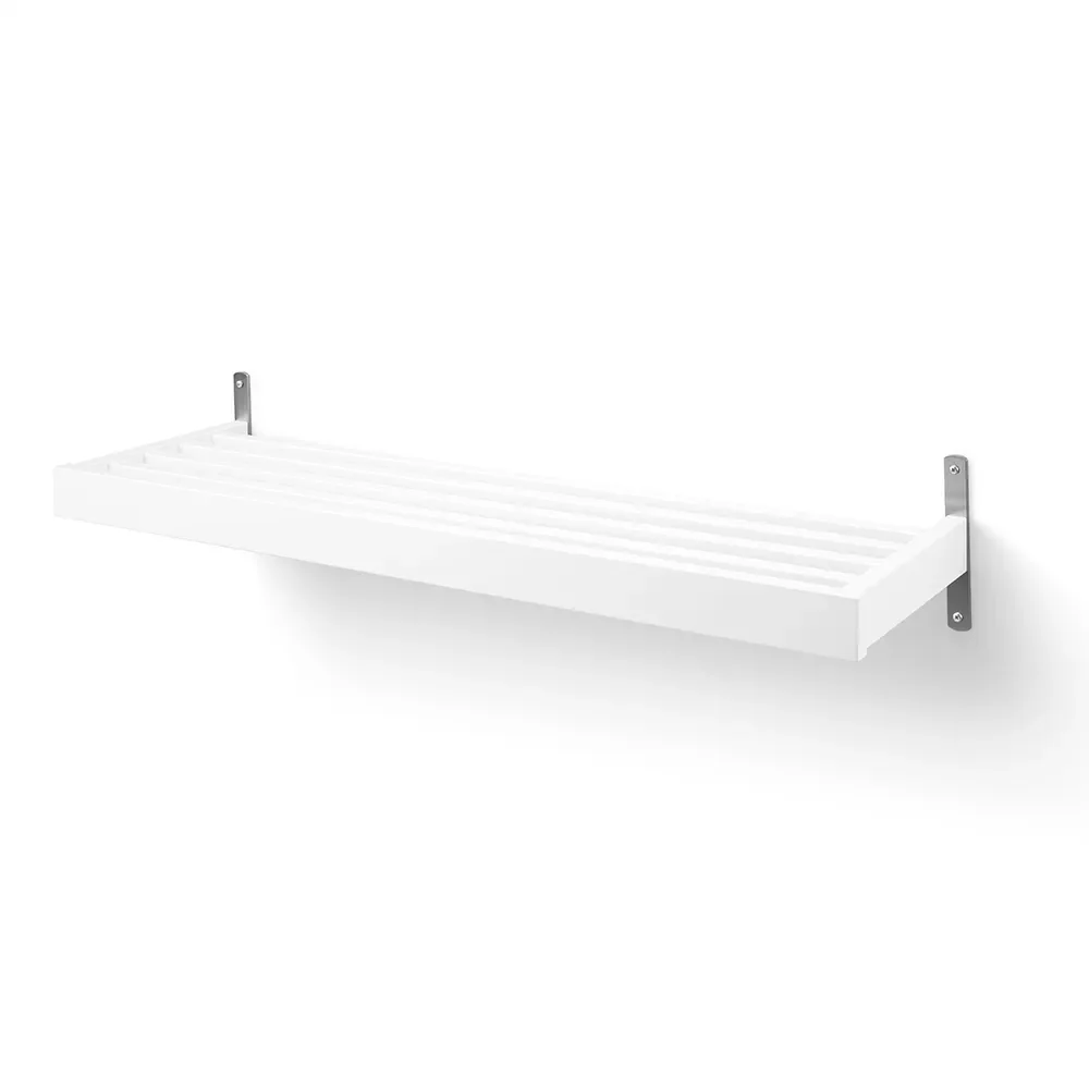 Oscarssons Möbel, Nadja Schuhregal 100 cm 2 Ebenen an der Wand montiert Weiß lackierte Birke/Stahl geschliffen
