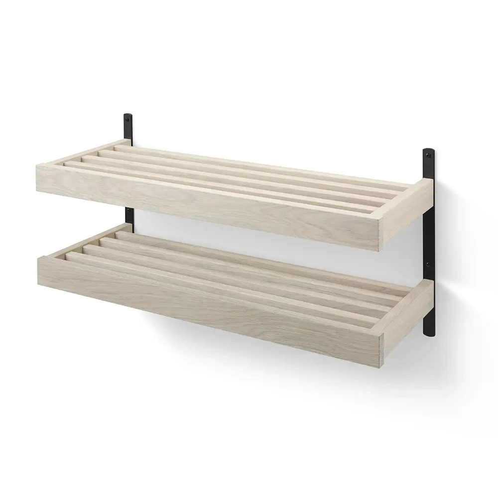 Oscarssons Möbel, Nadja Schuhregal 80 cm 2 Ebenen an der Wand montiert Eiche weiß geölt/Mattschwarzer Stahl