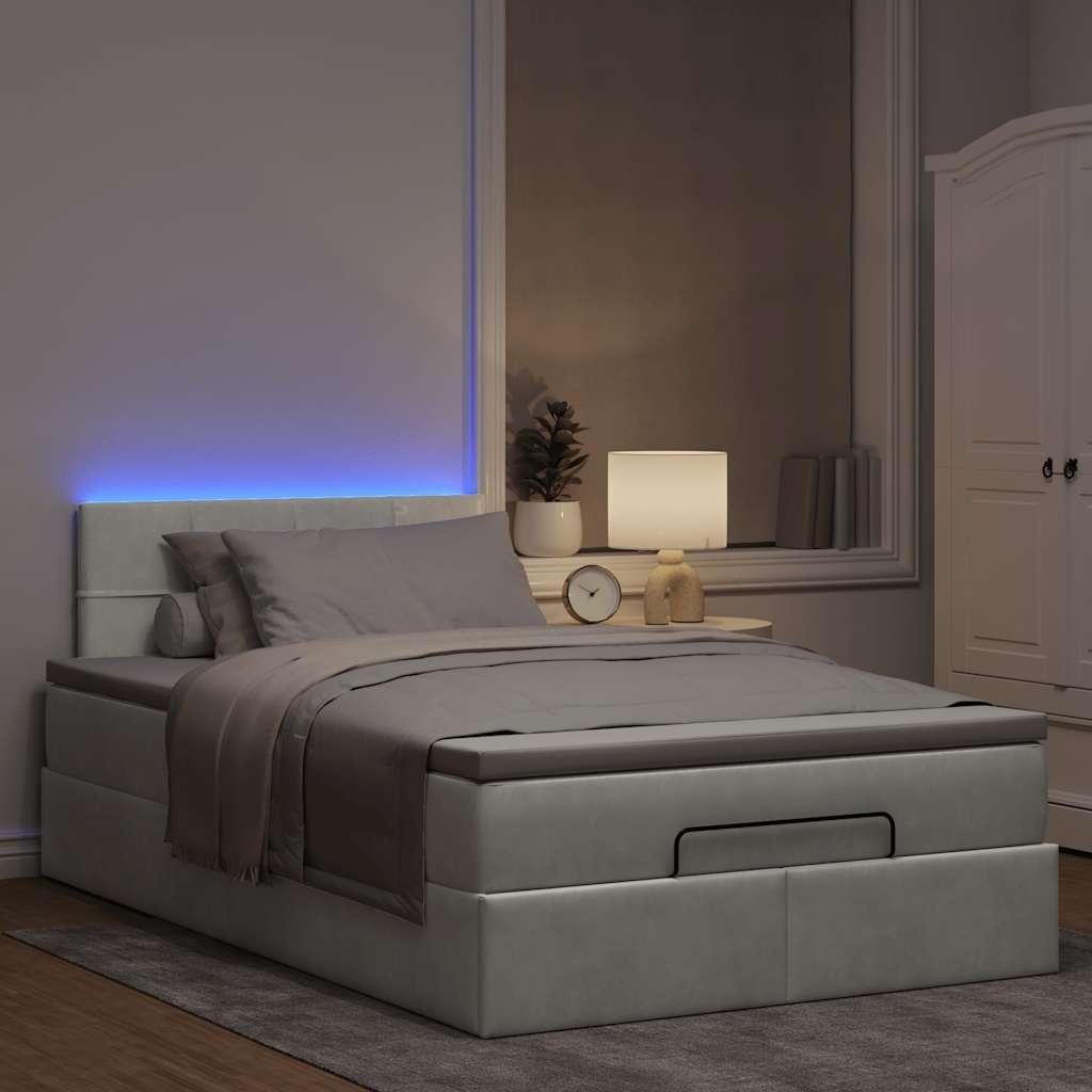 Ottoman seng med madras & LEDs 80x200 cm stof lysegrå