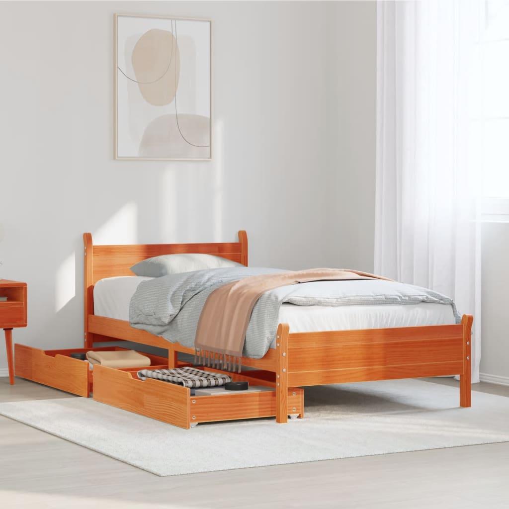 Sengeramme uden madras 75x190 cm massivt fyrretræ gyldenbrun