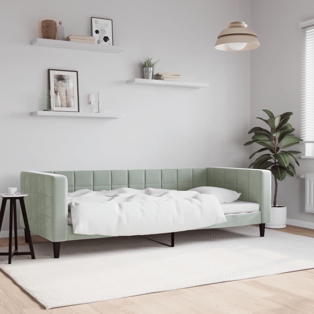 Daybed med madras 90x190 cm velour lysegrå