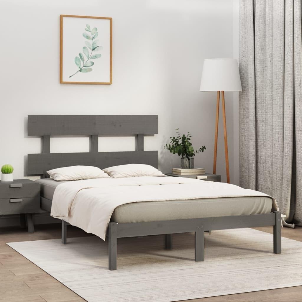 Sengeramme 200x200 cm massivt fyrretræ grå