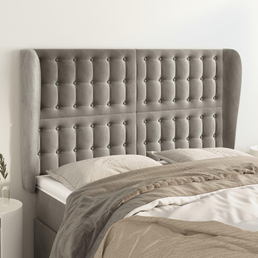 Sengegavl med kanter 147x23x118/128 cm fløjl lysegrå