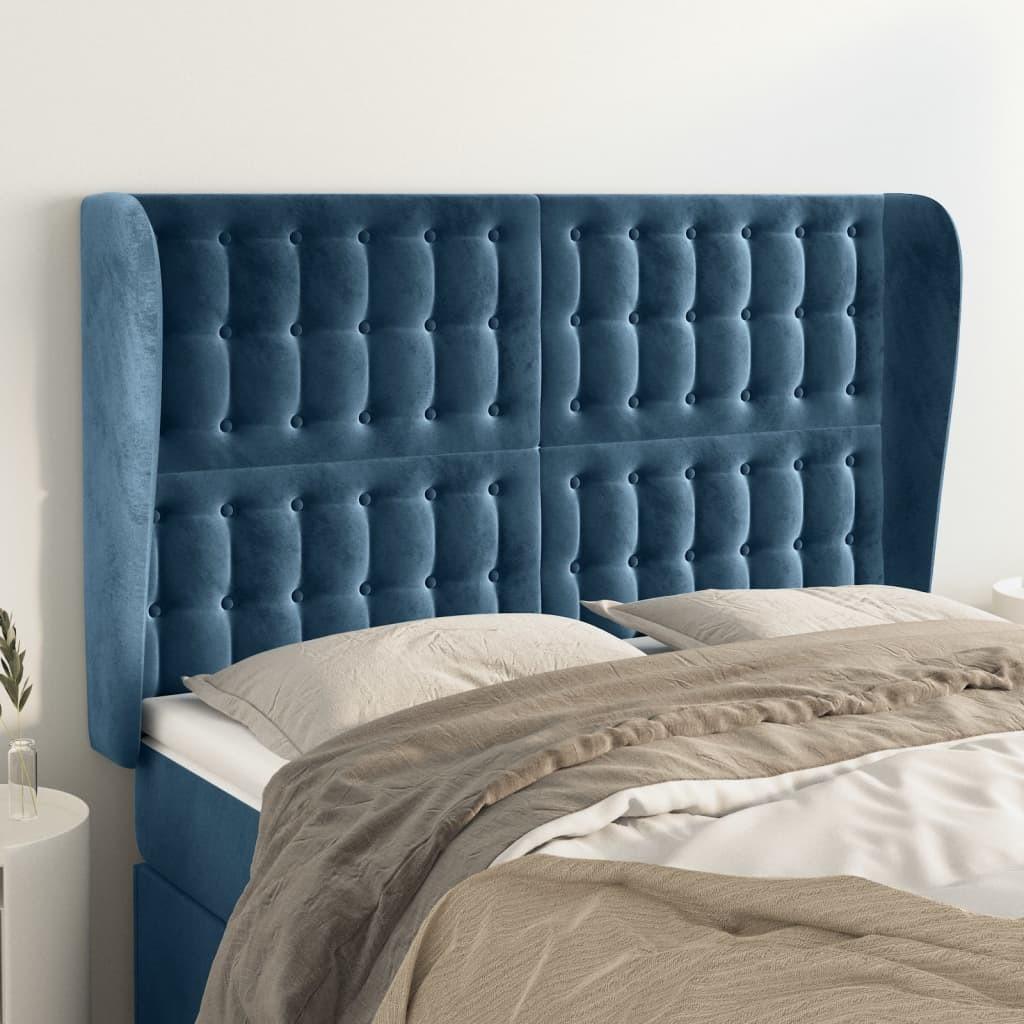 Sengegavl med kanter 147x16x78/88 cm fløjl mørkeblå