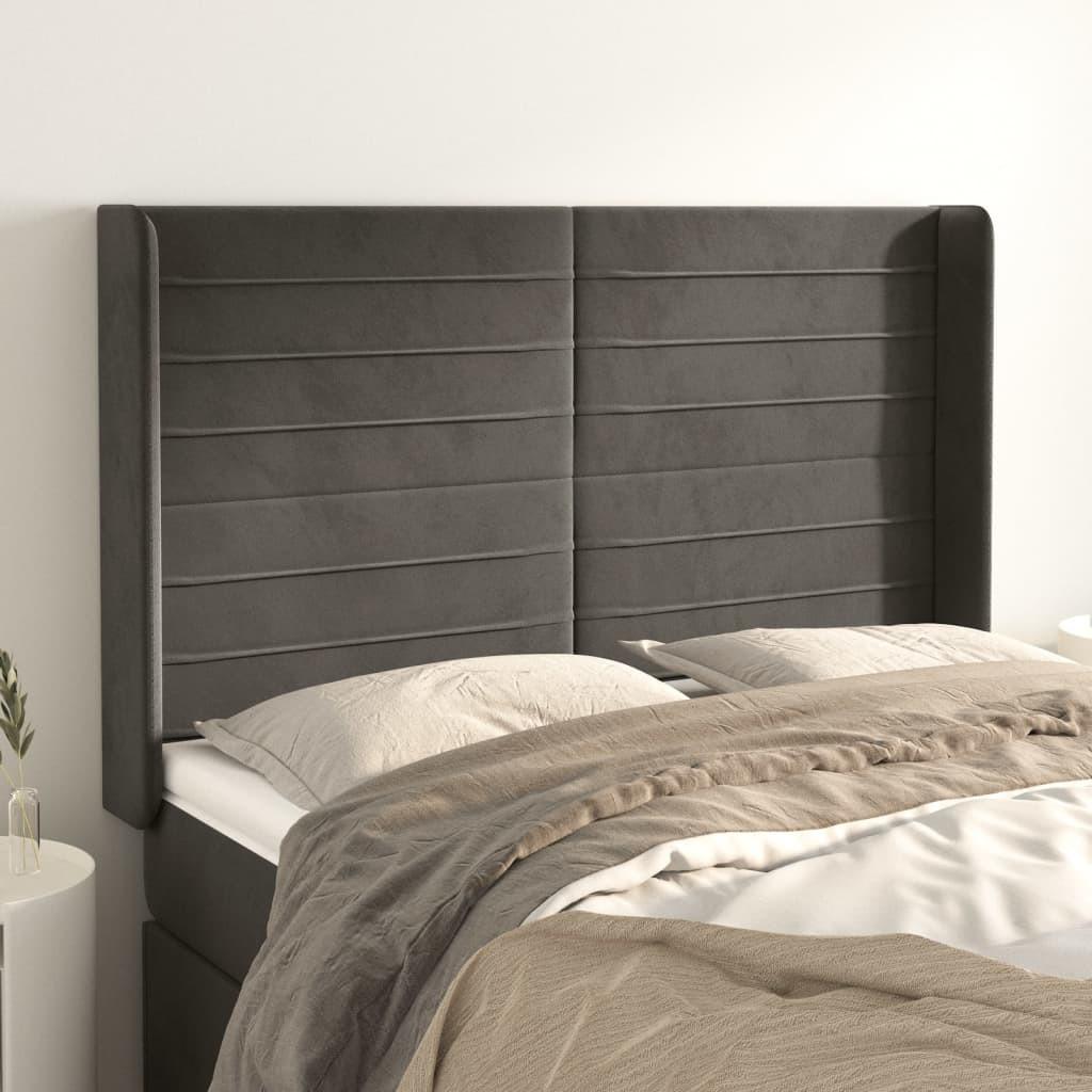 Sengegavl med kanter 147x16x118/128 cm fløjl mørkegrå