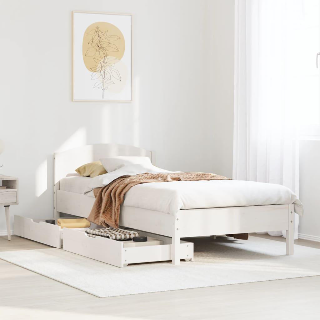 Sengeramme med skuffer 100x200 cm massivt fyrretræ hvid