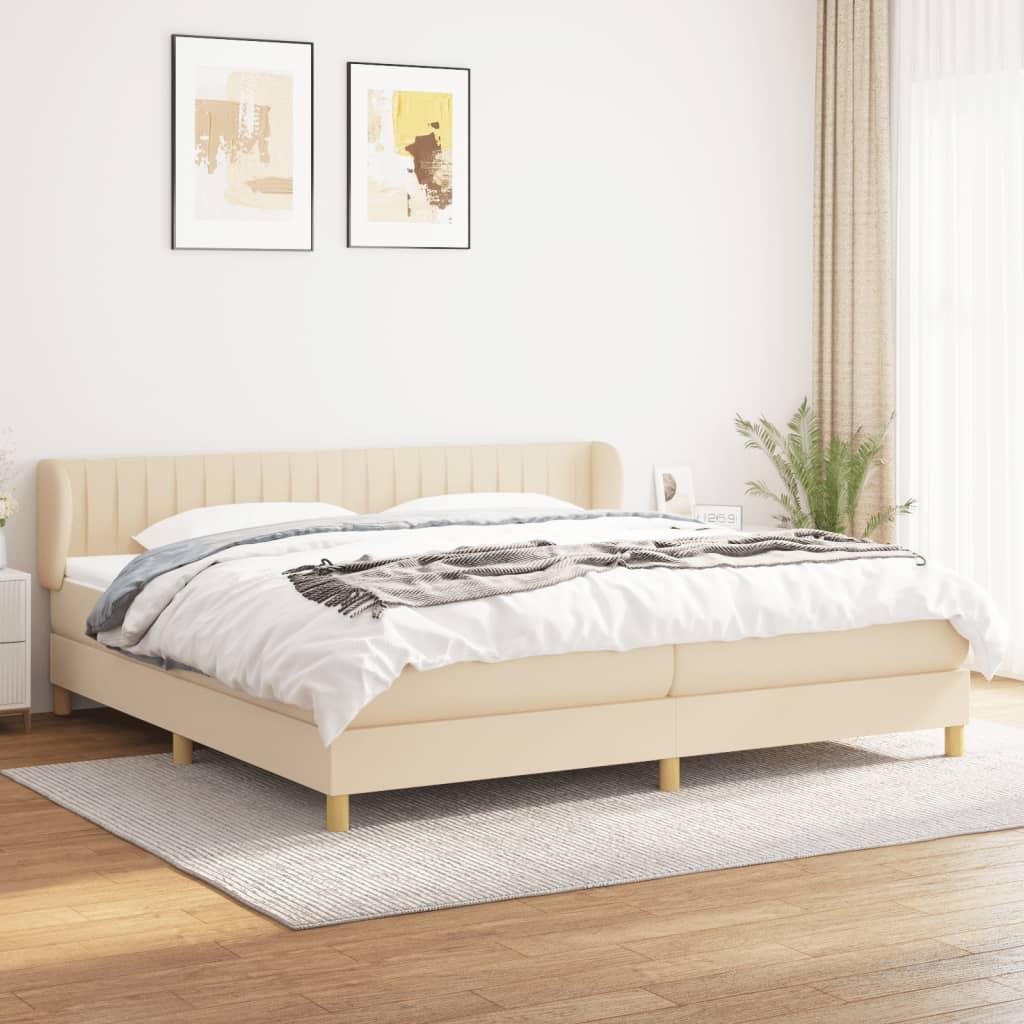 Kontinentalseng med madras 200x200 cm stof cremefarvet