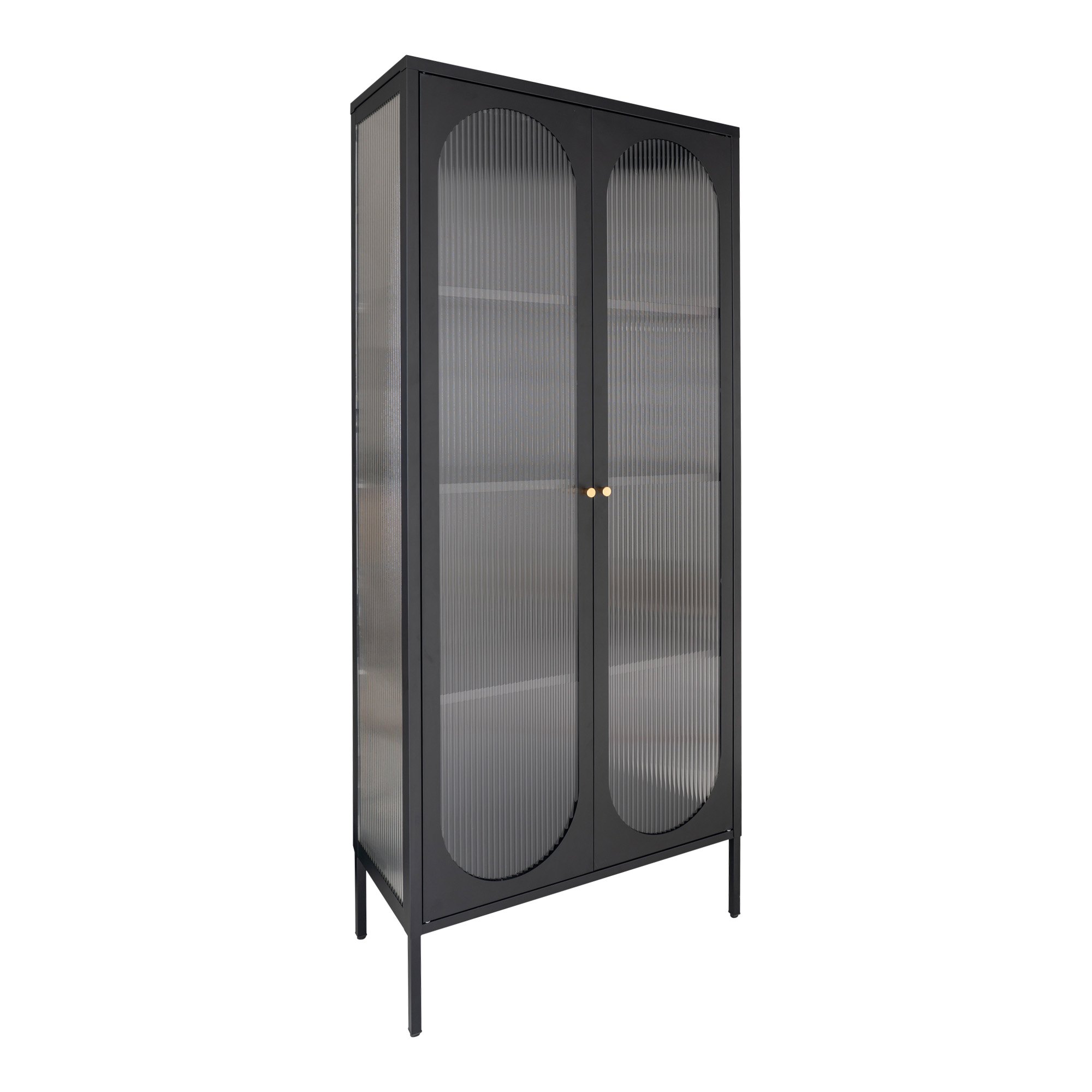 Moloo Vitrine 2 portes en verre ondulé et acier noir 90x180 cm Noir 35x180x80cm
