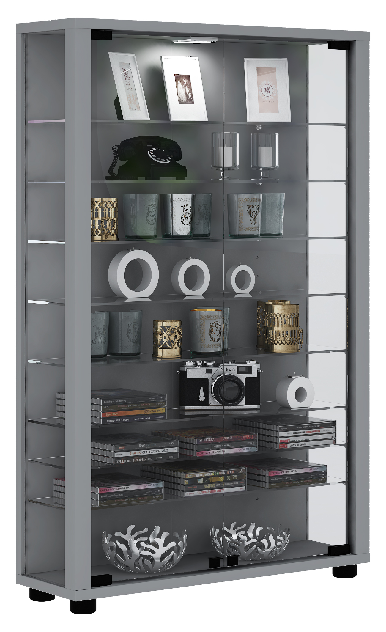 TilanoL vitrineskab CD, DVD 6 hylder 2 låger antracit