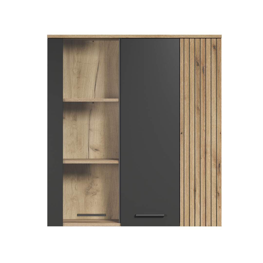 Udina vitrineskab væghængt med spejl 2 glaslåger bøgetræ dekor