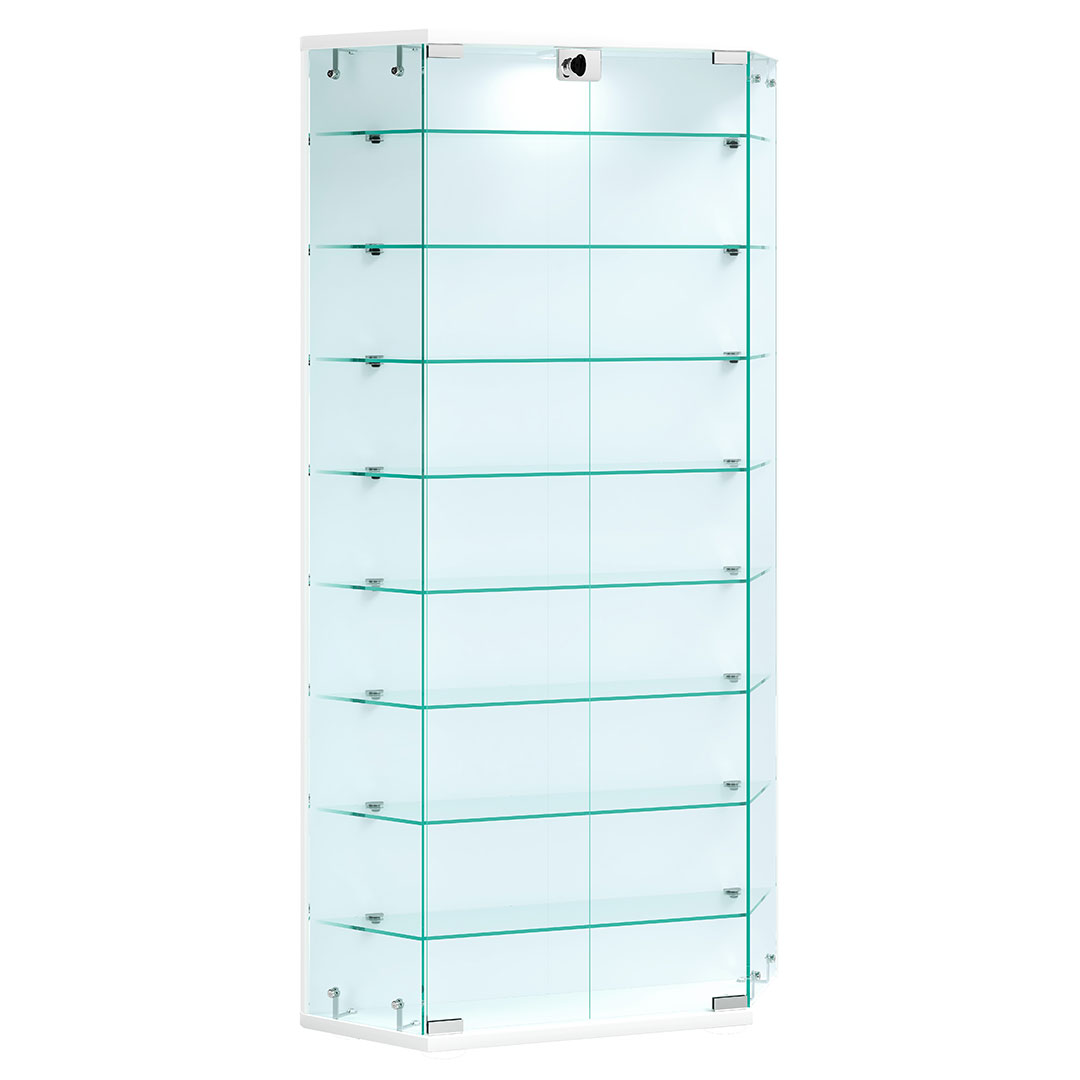 Edana Maxi vitrineskab, 1 glaslåge med LED lys, glasmontre 8 glashylder, hvid