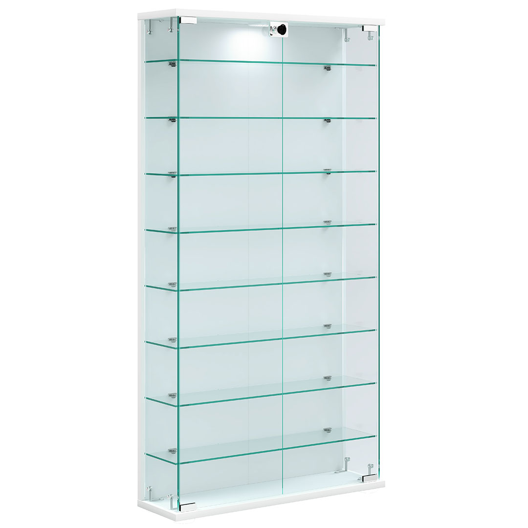 Lumo Maxi vitrineskab, 2 glaslåger, glasmontre med LED lys, hvid
