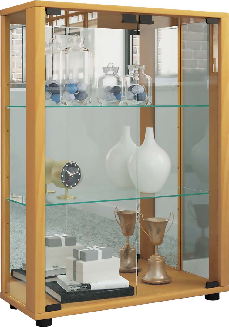 LumoMaxi vitrineskab med spejl 2 glaslåger bøgetræ dekor
